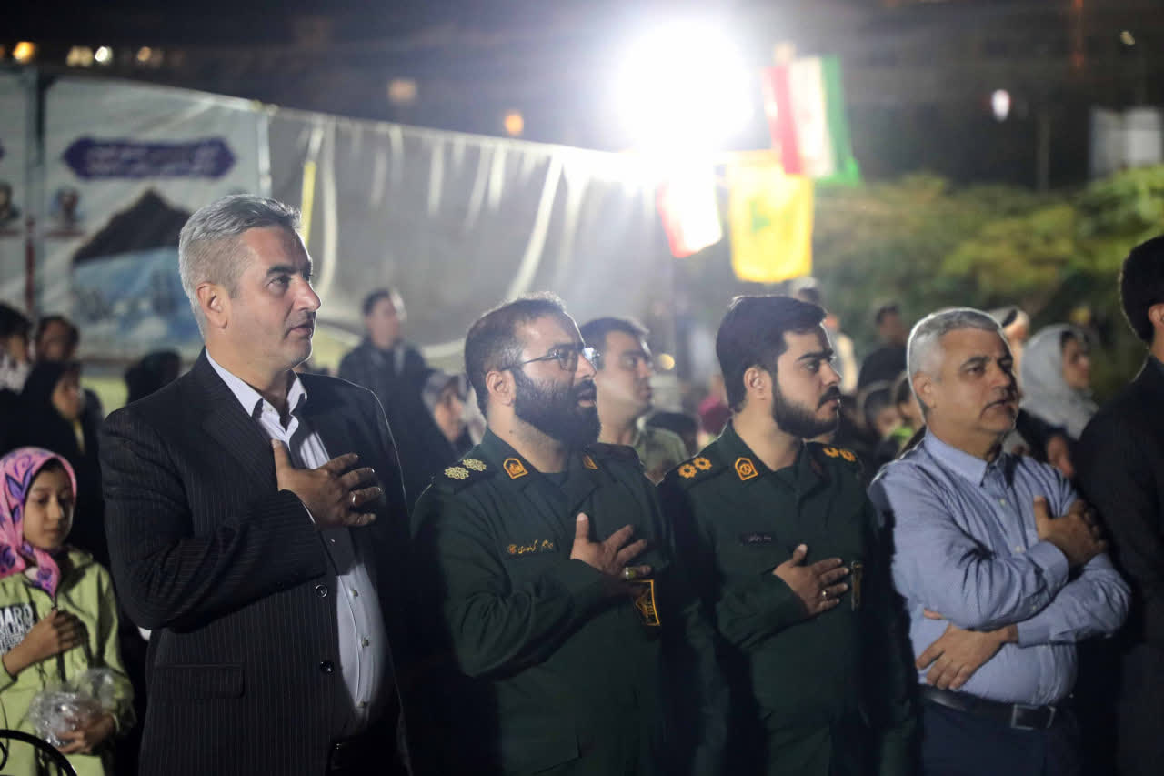 مسئولان سپس در کنار مردم حاضر در نمایشگاه از نمایش رزمی فرهنگی نبردی الهی که به تبیین برخی اتفاقات دوران دفاع مقدس و چگونگی ارتقا توانمندیهای موشکی کشور عزیزمان با محوریت شهید گرانقدر تهرانی مقدم میپردازد دیدن کردند.