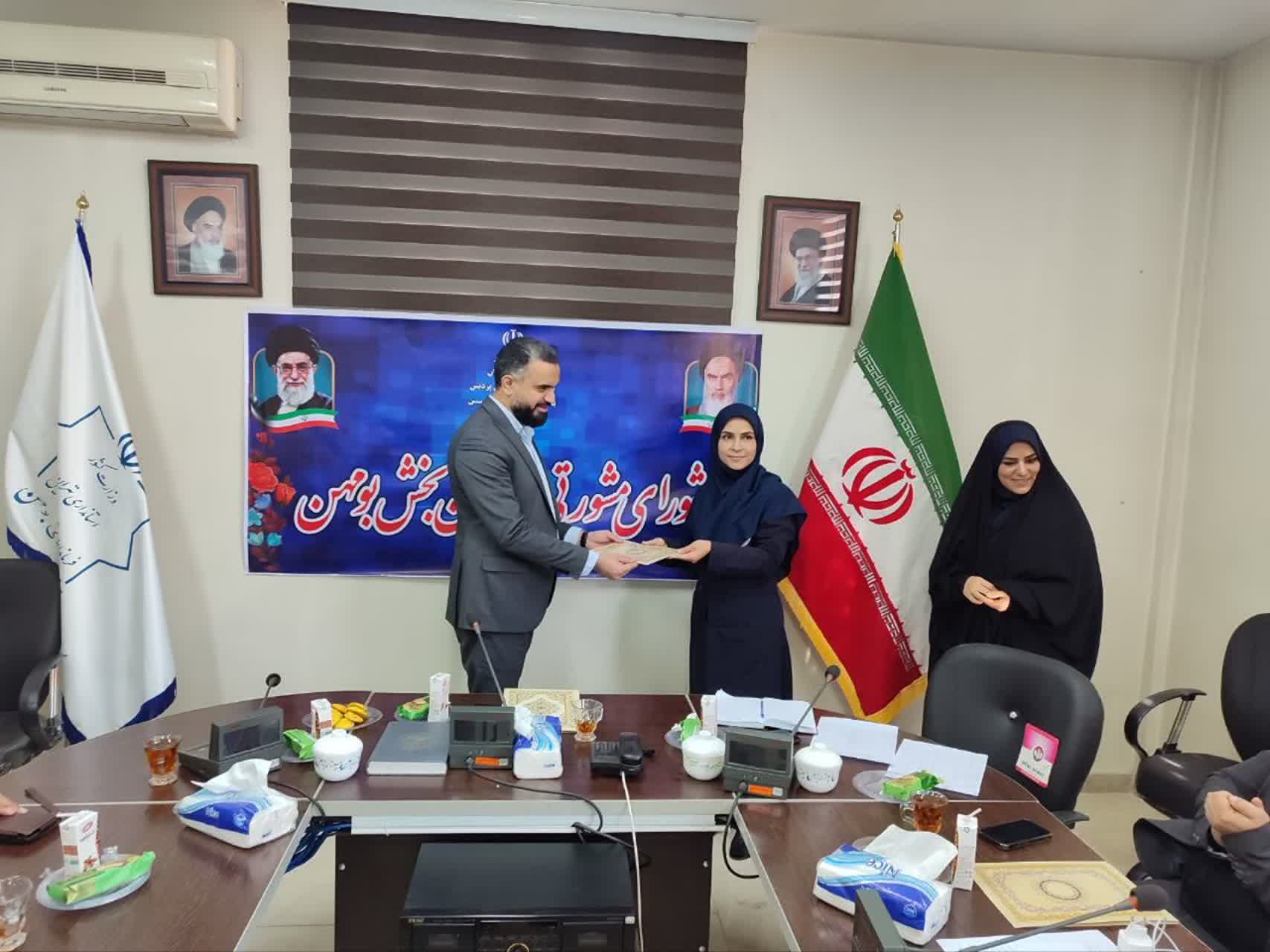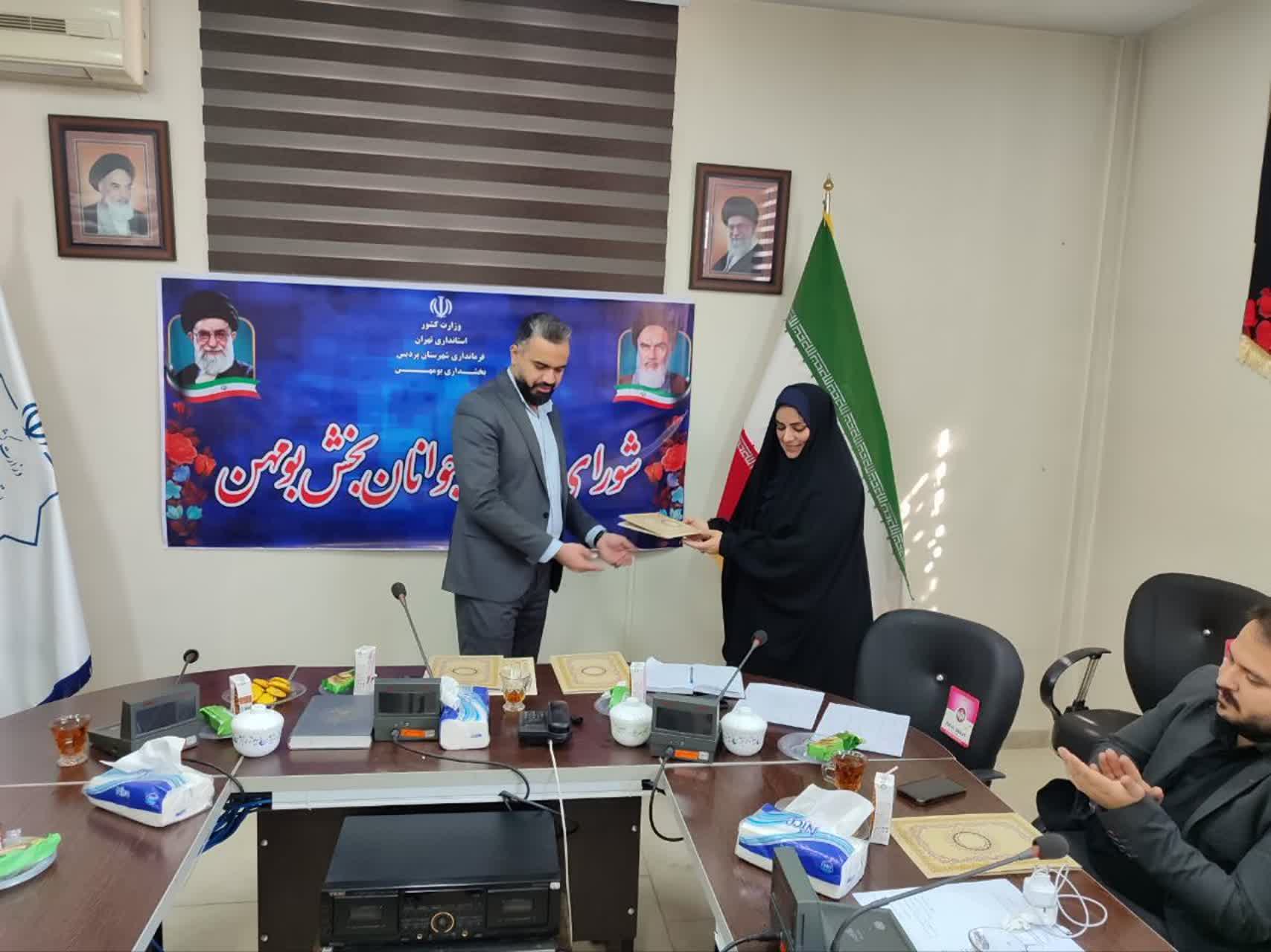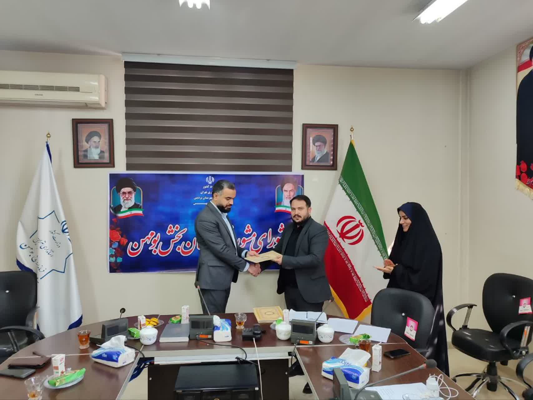 در پایان جلسه حکم اعضای شورای مشورتی جوانان و دبیر کارگروه ها توسط بخشدار بومهن به اعضا اهدا شد.