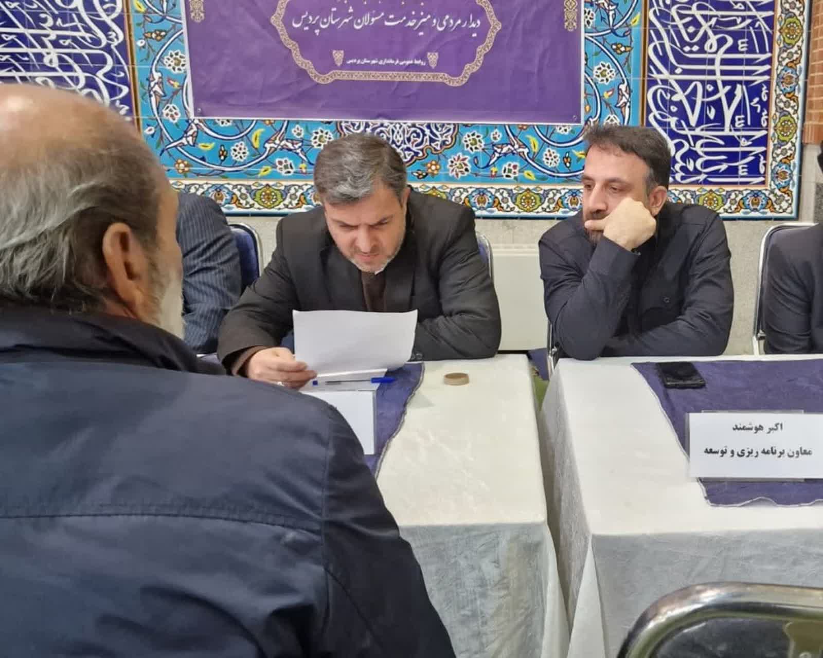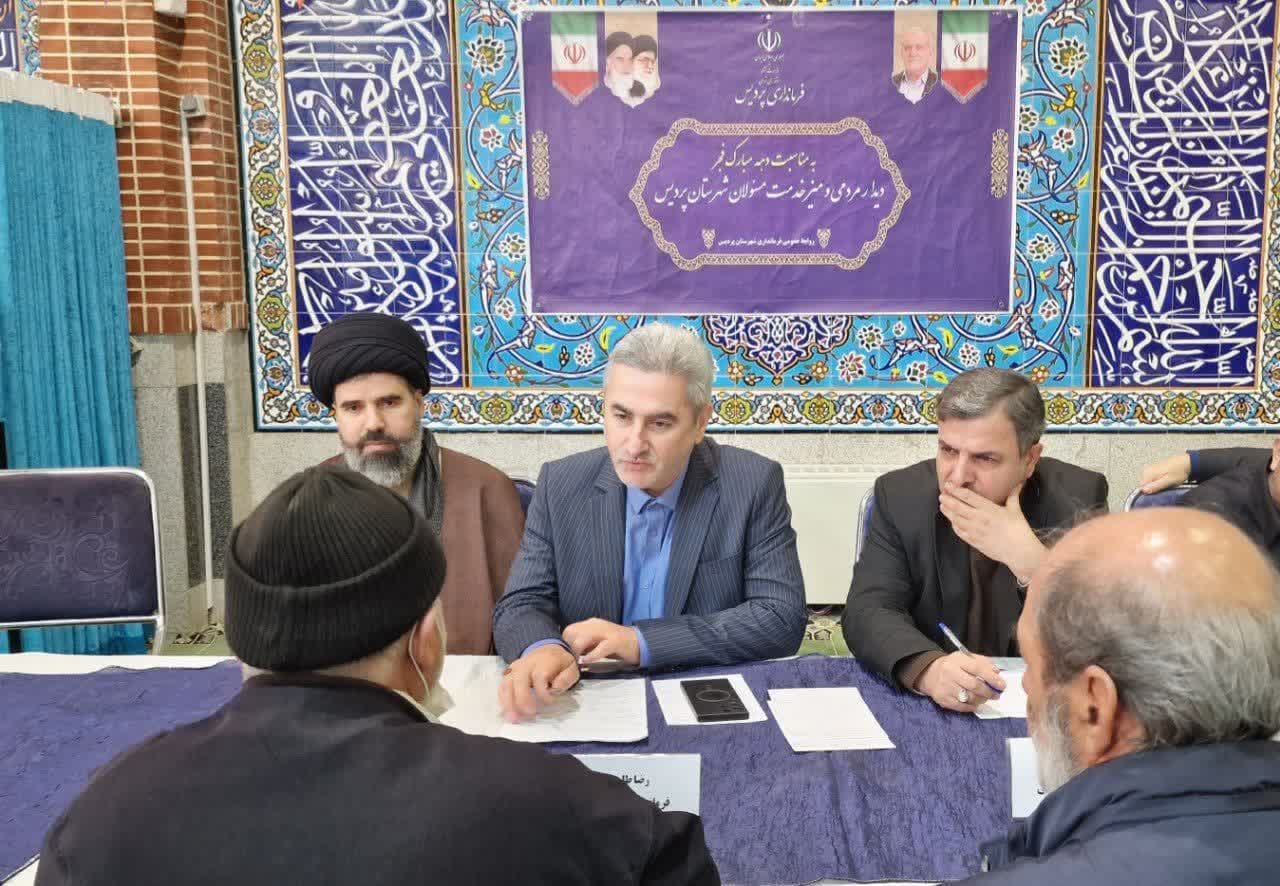 به گزارش پایگاه اطلاع رسانی فرمانداری پردیس، این قرار خدمت با حضور رضا طاهرخانی فرماندار پردیس، حجت الاسلام حسینی امام جمعه، معاونان فرماندار، بخشداران، شهرداران و روسای ادارات و نهادهای شهرستان پیش از اقامه نماز عبادی سیاسی جمعه برگزار و جمع کثیری از مردم با حضور در مصلی نماز جمعه مشکلاتشان را با مسئولان در میان گذاشته و خواستار رسیدگی برای رفع این مشکلات شدند.